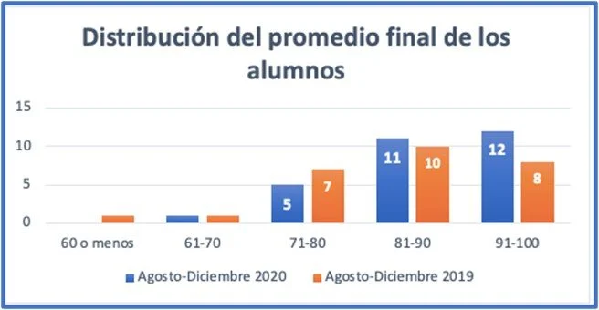 Image 1. Comparison of the final averages of the students in August to December 2020 with the same semester the prior year.