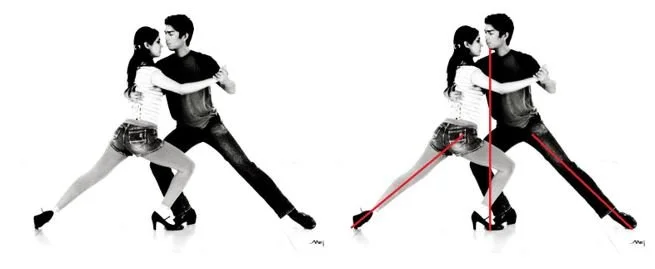 In many poses characteristic of the tango, symmetrical relationships are established. The legs of the dancers form parallel lines; some dance steps even form polygons.