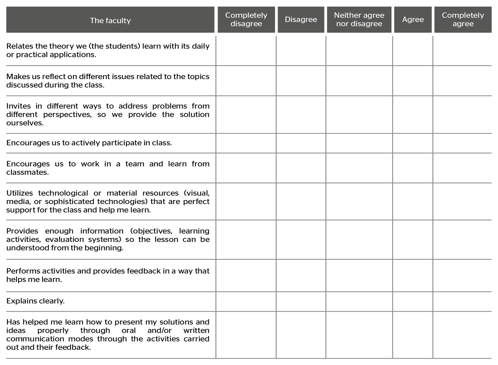 Table 1 is a post-review adapted for students assessing their teacher’s performance from the learner’s viewpoint.