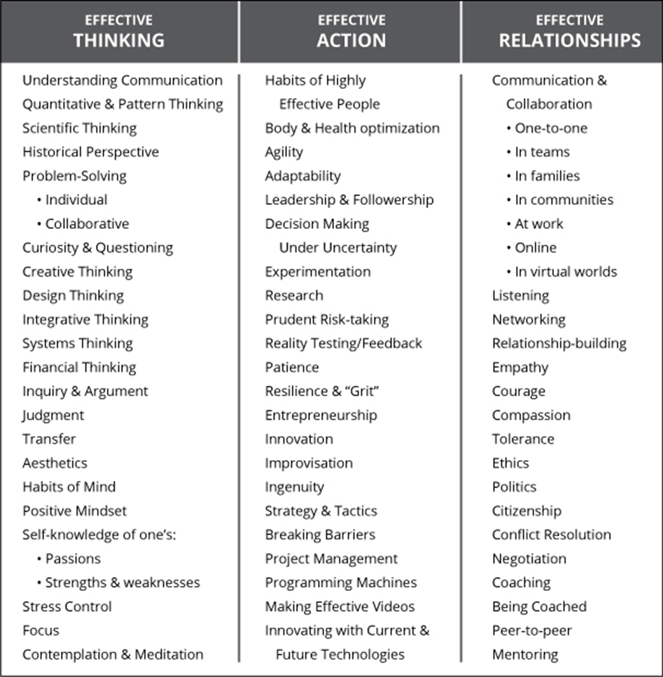 Prensky’s A “Better” World Curriculum (2014) seeks to replace the current curriculum because today’s basic curriculum is no longer what learners need. Educators still teach outdated skills explicitly (e.g., communication skills), but they do not teach the real skills needed for life. Learners today should master emotional intelligence, negotiation, and entrepreneurship skills. However, the three current core subjects taught (Math, Science, and Language) are considered the basics that could not help in teaching real-life skills needed for future careers.