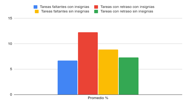 On the other hand, Table 4 shows the average number of activities submitted late and the uncompleted activities with and without badges.