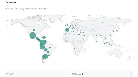 Given these needs, researchers from the Educational Innovation Group in Development and Use of Technology in Education (DUTE) at Tecnologico de Monterrey implemented a strategy to strengthen digital security skills in young people through a self-directed and free online course, which includes videos, infographics, forums, downloadable activities, and files. This modality was selected for its overall success in recent years because it presents an alternative training in the times and schedules decided by the participant. Three and a half months after its launch, the course has exceeded three thousand registrations, has a rating of 4.11/5.00, participants from 56 countries, and speakers of 14 languages (see Image 1).