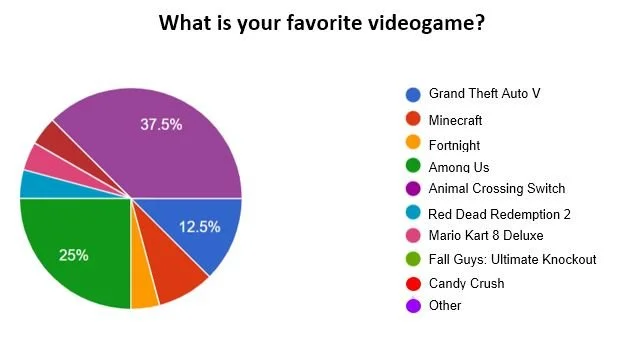 In the survey, we asked the students about their favorite games to know a little more about their preferences and what type of game was most popular. For this question, we selected ten of the most tweeted games in Mexico according to a post from the platform’s official Twitter account in Mexico in 2020. To our surprise, 37.5% of students responded that they liked a different game than those on our list. The games not included on our list were: League of Legends, Crossfire, and Roblox.