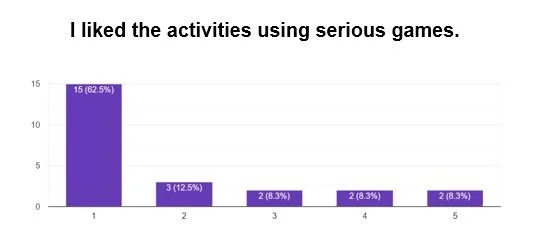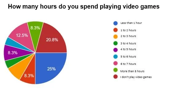Before starting the project, a student survey yielded the following statistics: The class comprised 50% women and 50% men. 83.3% liked to play video games, while 16.7% did not enjoy them. 25% of the students spent between 1 and 2 hours a week on video games in general, while 8.3% of the group played more than 8 hours a week in this activity.