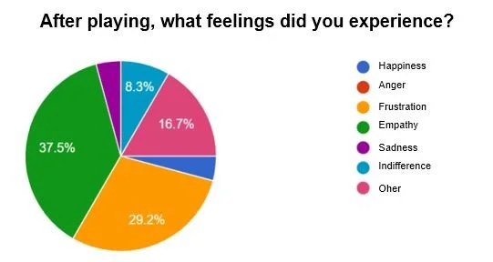 Once the project was finished, a round table was held with the students about this experience. They answered a satisfaction survey in which we asked them about the feeling they primarily had while they were playing. The results showed that 37% of the students experienced most a feeling of empathy, followed by 29.2% who said they felt frustrated due to not being able to achieve the objectives of the simulation.