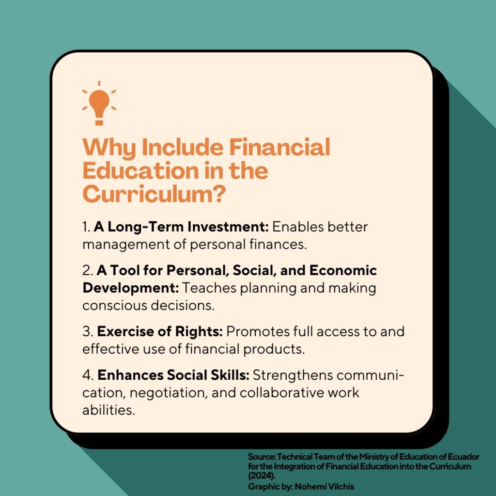 In summary, the Technical Team for the Curricular Insertion of Financial Education in the Ministry of Education of Ecuador points to four benefits of adding financial content and skills to the school curriculum: