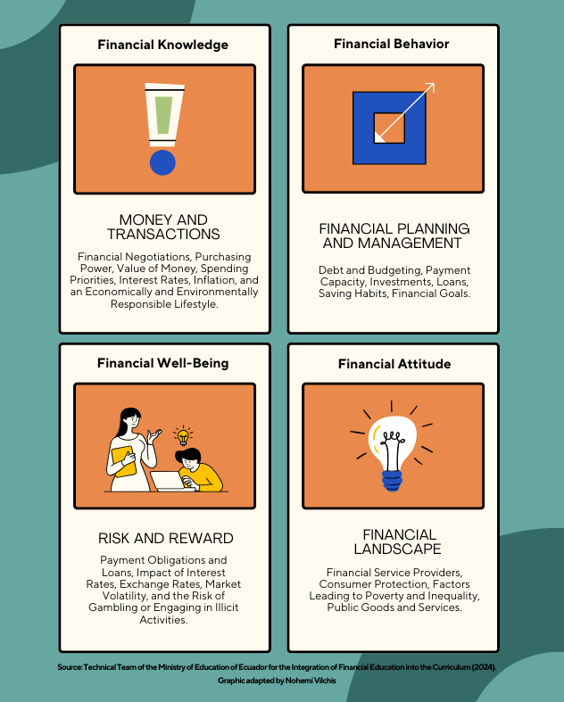 However, the Technical Team for the Curricular Insertion of Financial Education in the Ministry of Education of Ecuador proposes a specific path suggesting the adoption of a series of dimensions: