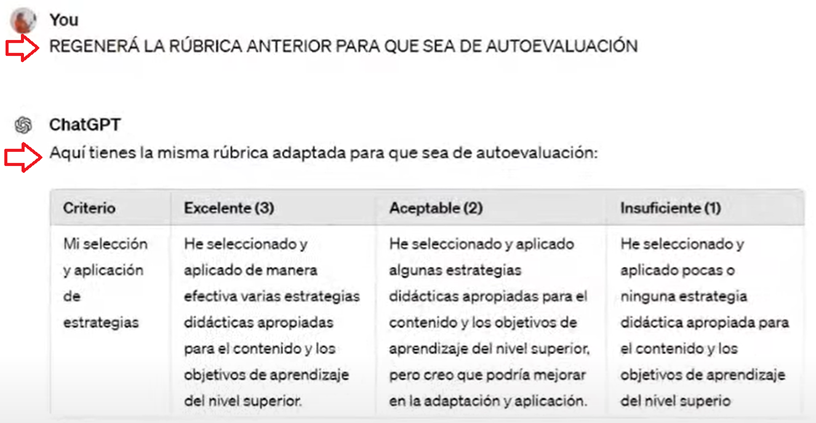 Using ChatGPT, we can accelerate improvement processes. In a short time, it enables us to organize a class program that respects the content and bibliography, but with new suggested activities and times, while generating new tools that we can implement for learning. For example, we do not always have time to train simultaneously on educational or technological trends, new evaluation models, etc. However, even if we are not experts, we can use ChatGPT to explore what this class would be like with a “particular” educational trend. See Image 5. See the full video.