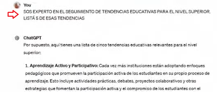 For this practice, it is essential to clarify that the objective is not for the chatbot to impersonate the teacher but to utilize technology (in this case, ChatGPT) as a personal assistant that advises on didactic planning design, contrasting and testing our preparations for the class. In other words, ChatGPT can make suggestions as an advisor. Still, the teacher uses critical judgment to determine the quality and relevance of the chatbot’s responses to prompts. In the IFE Observatory Webinar, Professor Caputi explains that it is also essential to consider the confidentiality of the information entered into ChatGPT or any other AI technology.
