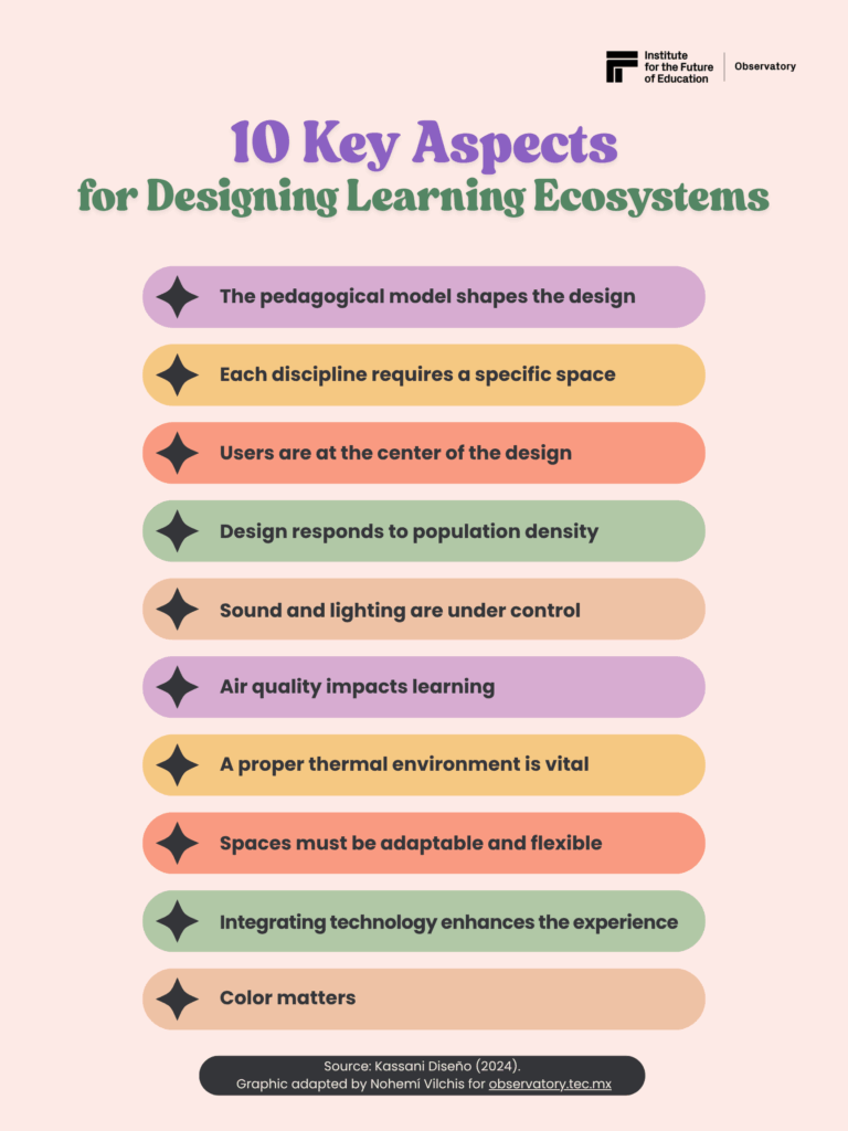 The company Kassani Diseño, based in Bogotá and specializing in furniture manufacture, maintains that design should not be limited to aesthetics, but should also fulfill a pedagogical function in learning environments. For this reason, it proposes 10 key aspects of educational space design that respond to students’ cognitive, emotional, and social needs to develop their skills to the fullest: