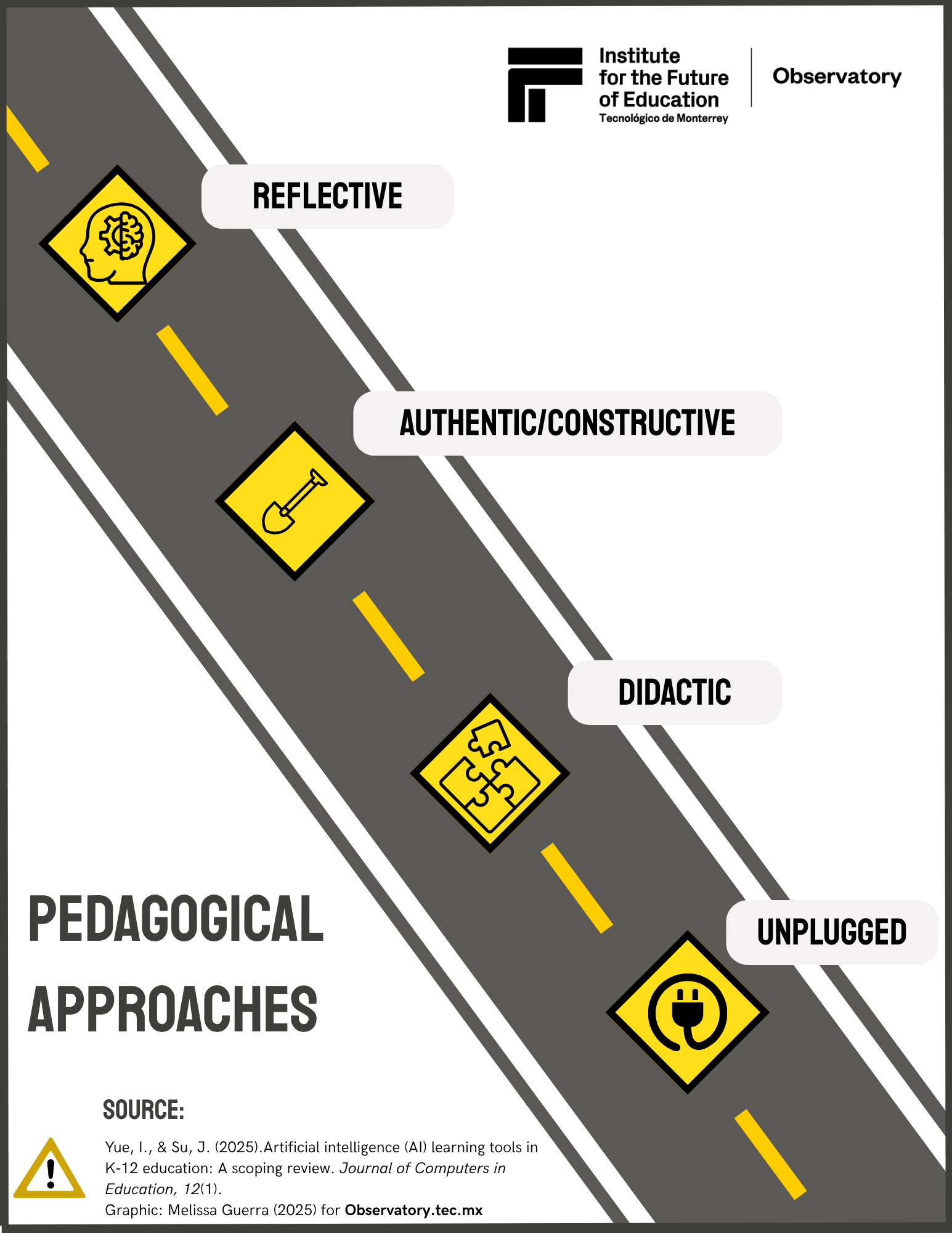 Along these lines, this article reports on a systematic review by Yue et al. (2022), Pedagogical Design of K-12 Artificial Intelligence Education: A Systematic Review, which describes some of the most relevant pedagogical approaches and strategies in primary education when designing learning experiences that integrate AI. Additionally, it explores Yim and Su’s (2025) article, “Artificial Intelligence (AI) Learning Tools in K-12 Education: A Scoping Review,” which outlines the four main pedagogical approaches and their corresponding strategies in primary education.
